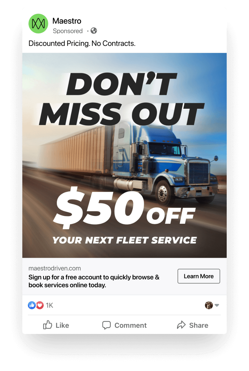 Building a website is great, but how will people hear about it? Our digital marketing team created a social media advertising campaign that brought Maestro's story to fleet owners and service providers - the target audiences for this new platform. We used this campaign to drive interest, capture event signups, and to acquire new customers.